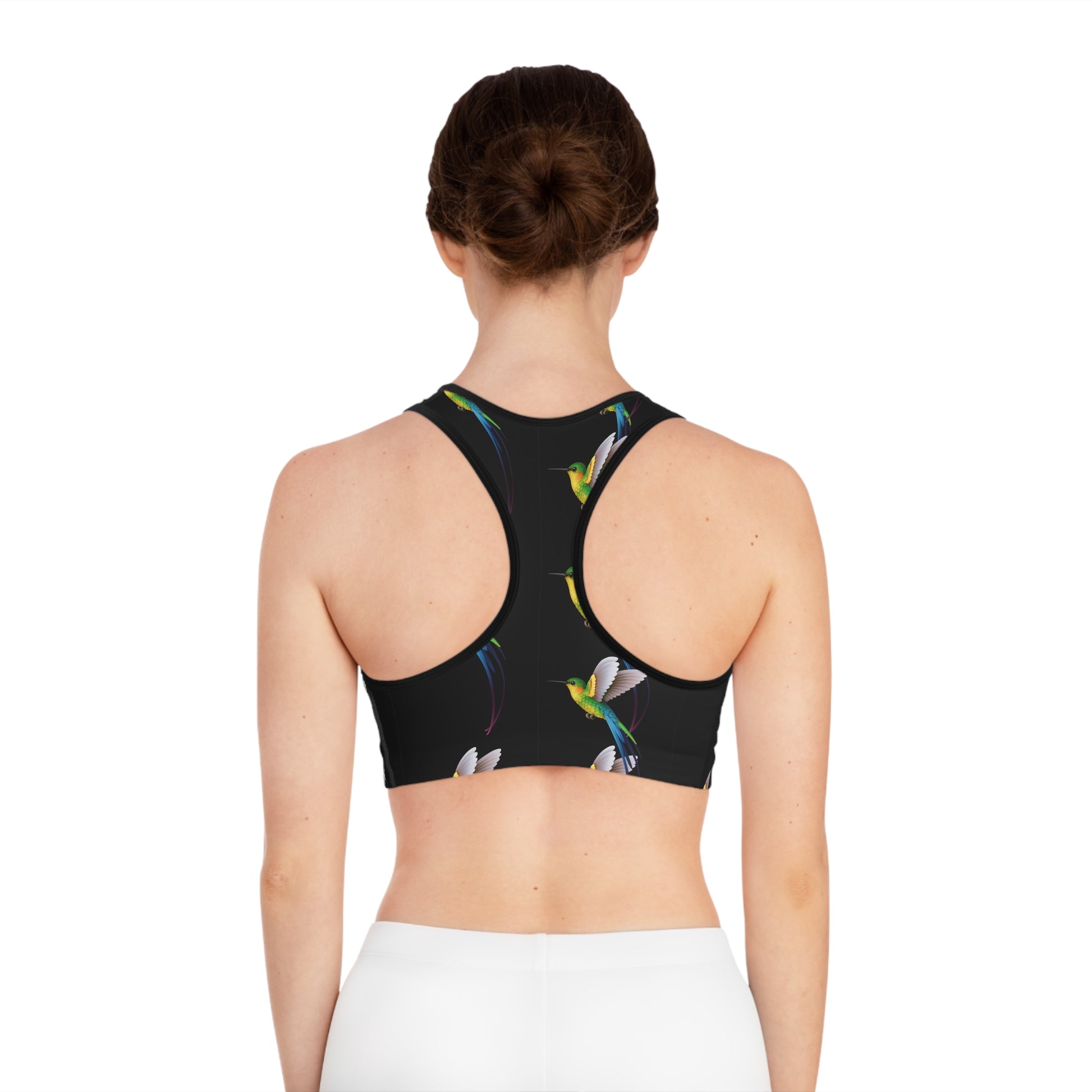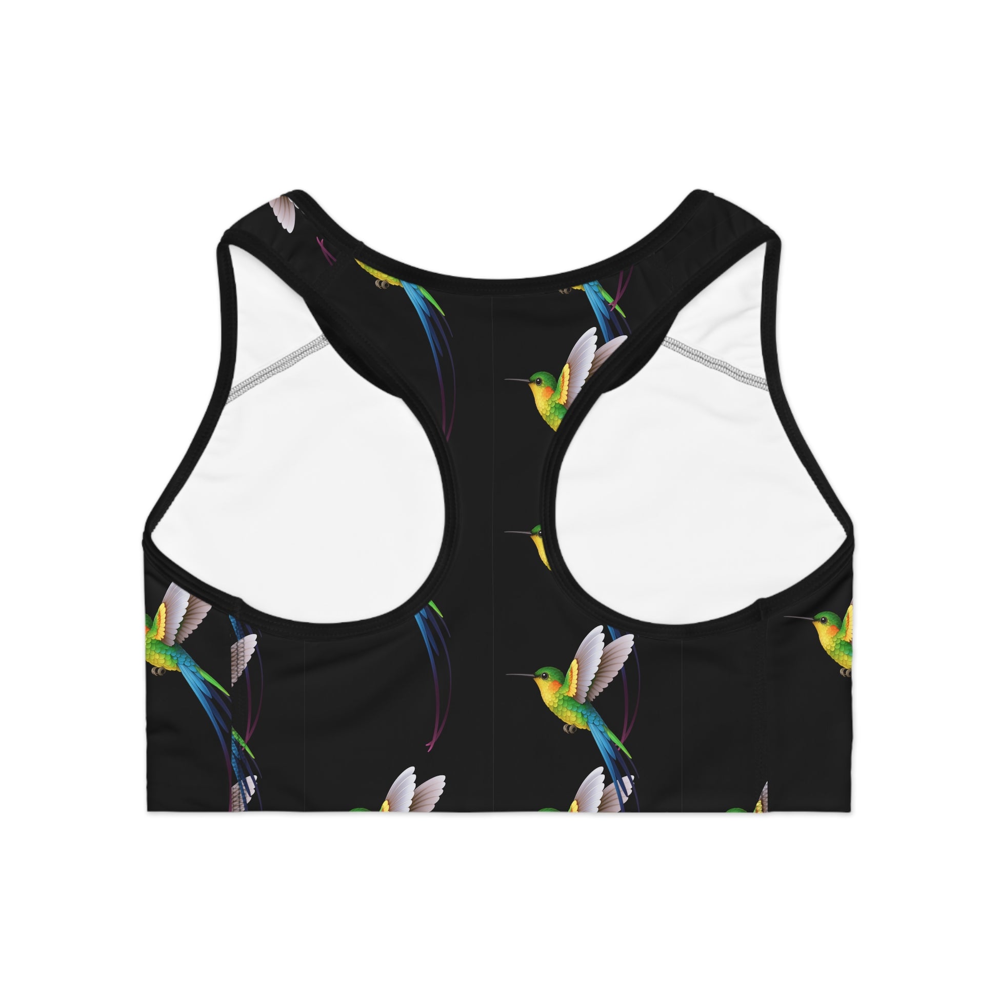 Black Colorful Hummingbird Sports Bra | Activewear, Workout Gear, Fitness Apparel, Yoga, Gifts for Her
